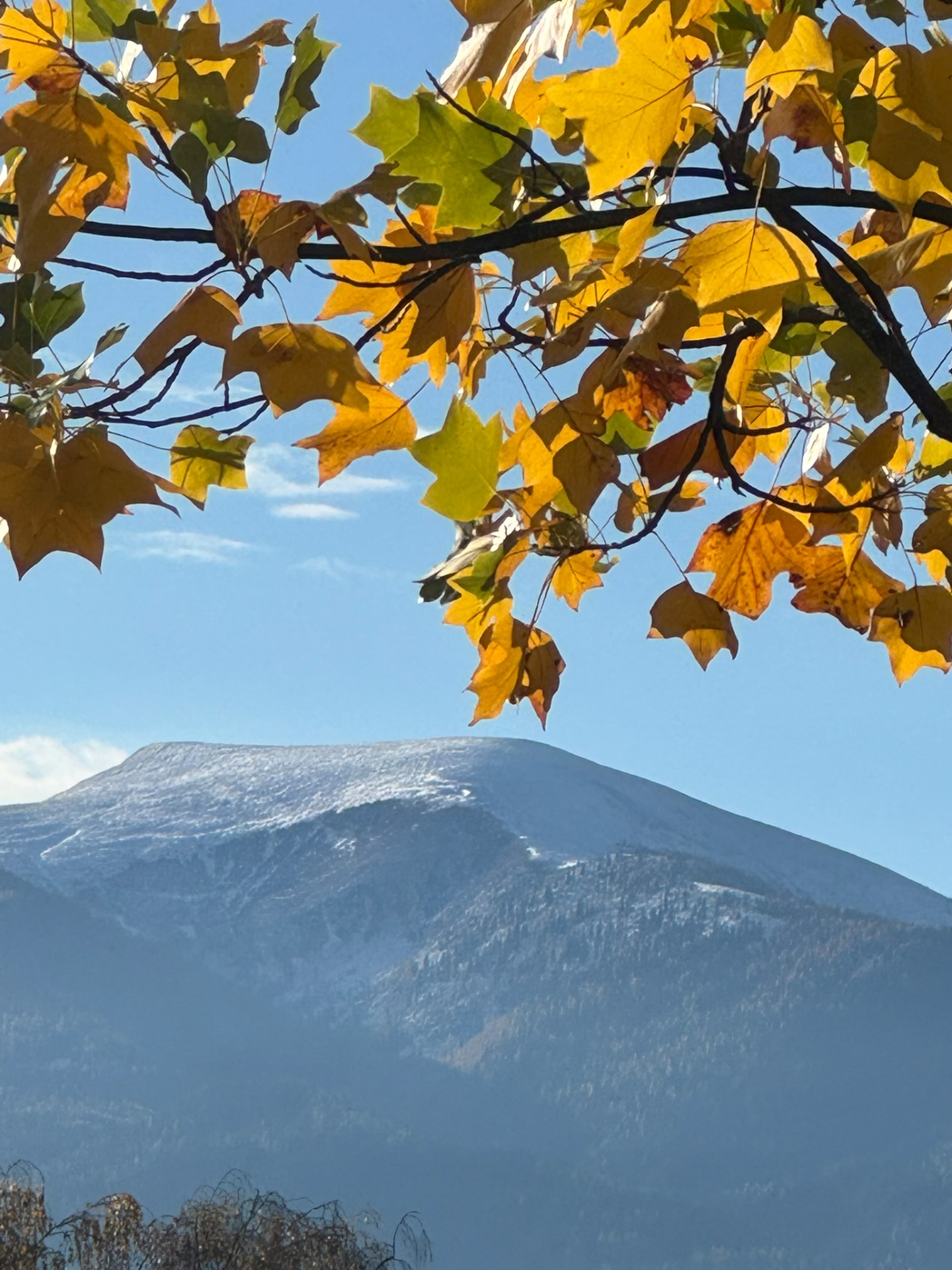 Die Natur zeigt sich farbenprächtig. Erste Frostnächte in Prag, erster Schnee auf den Bergen rund um Zeltweg. Auf dem Balkon blüht es weiter, einige Sonnentage, viel Regen und Wind.